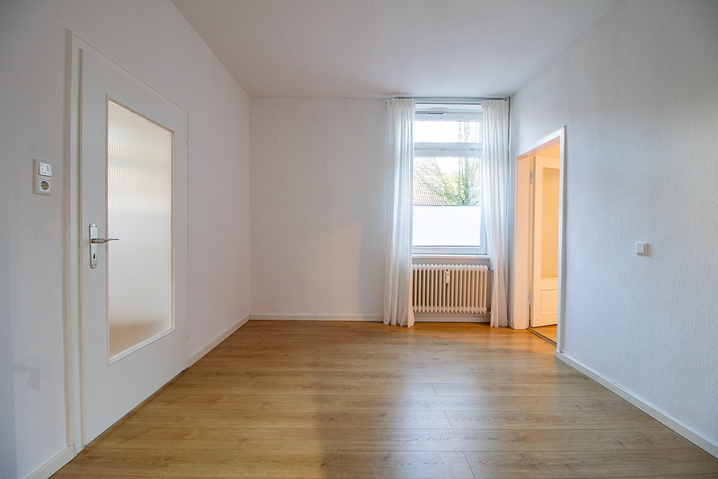Die Wohnung verfügt insgesamt über vier Zimmer. Neben dem Wohn- und Essbereich stehen drei weitere Zimmer zur Verfügung. Eines der Zimmer ist als Durchgangsraum angelegt und eignet sich ideal als Büro oder Arbeitszimmer. Die beiden weiteren Zimmer können jeweils als Schlafzimmer genutzt werden und bieten flexible Gestaltungsmöglichkeiten für unterschiedliche Wohnbedürfnisse.