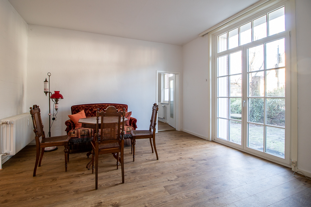 Große Fensterflächen sorgen für eine helle und freundliche Wohnatmosphäre. Die Terrasse sowie der Außenbereich mit gepflegtem Steinweg und Grünflächen bieten zusätzlichen Raum zur Erholung im Freien.